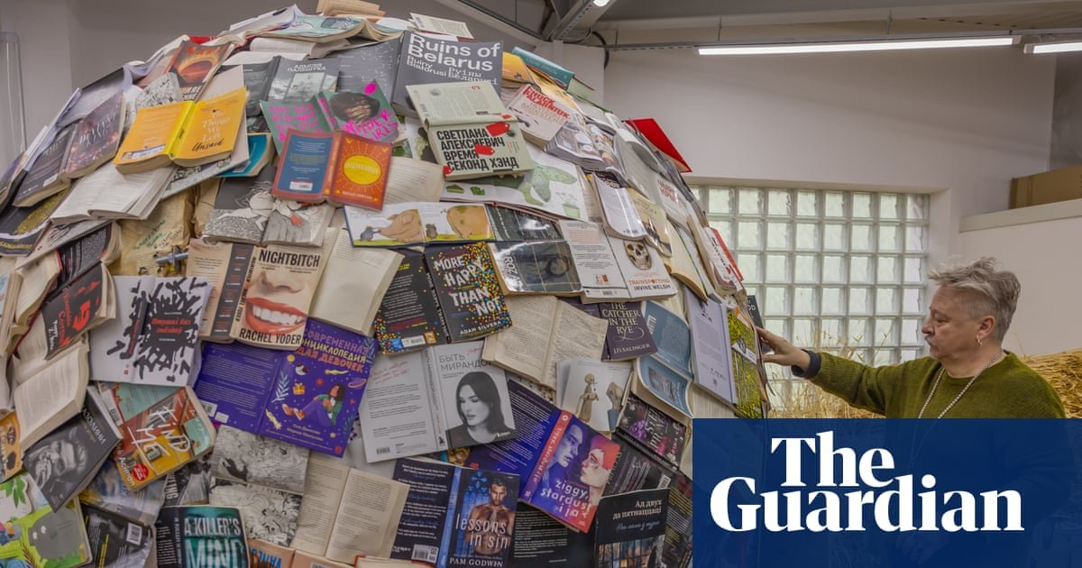 Meand a studio on a street in the west of Warsaw, a group of former political prisoners are cutting wheat stalks up to 90cm long and stacking them, ready to be sent to Venice Biennale. A huge ball made of books banned in neighboring Belarus – Harry Potter, Nobel laureate Svetlana Alexievich, recorded history of kink – rests on the claw of a bulldozer. There is the sound of laughter, organ music and a grinder, while the cameras are fixed on a long iron cross.